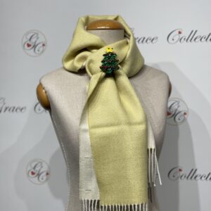 Szalik 2-stronny, 100% wełna alpaka baby, kolor oliwkowo-kremowy