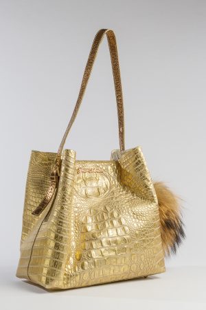 Torebka skórzana, tłoczony i barwiony wzór aligatora, mimo średniego rozmiaru bardzo pojemna, odpowiednia do i po pracy, szykowna, kobieca, wewnątrz dodatkowy portfelik na kartę, telefon, dokumenty, z przedłużany pasek na ramię.