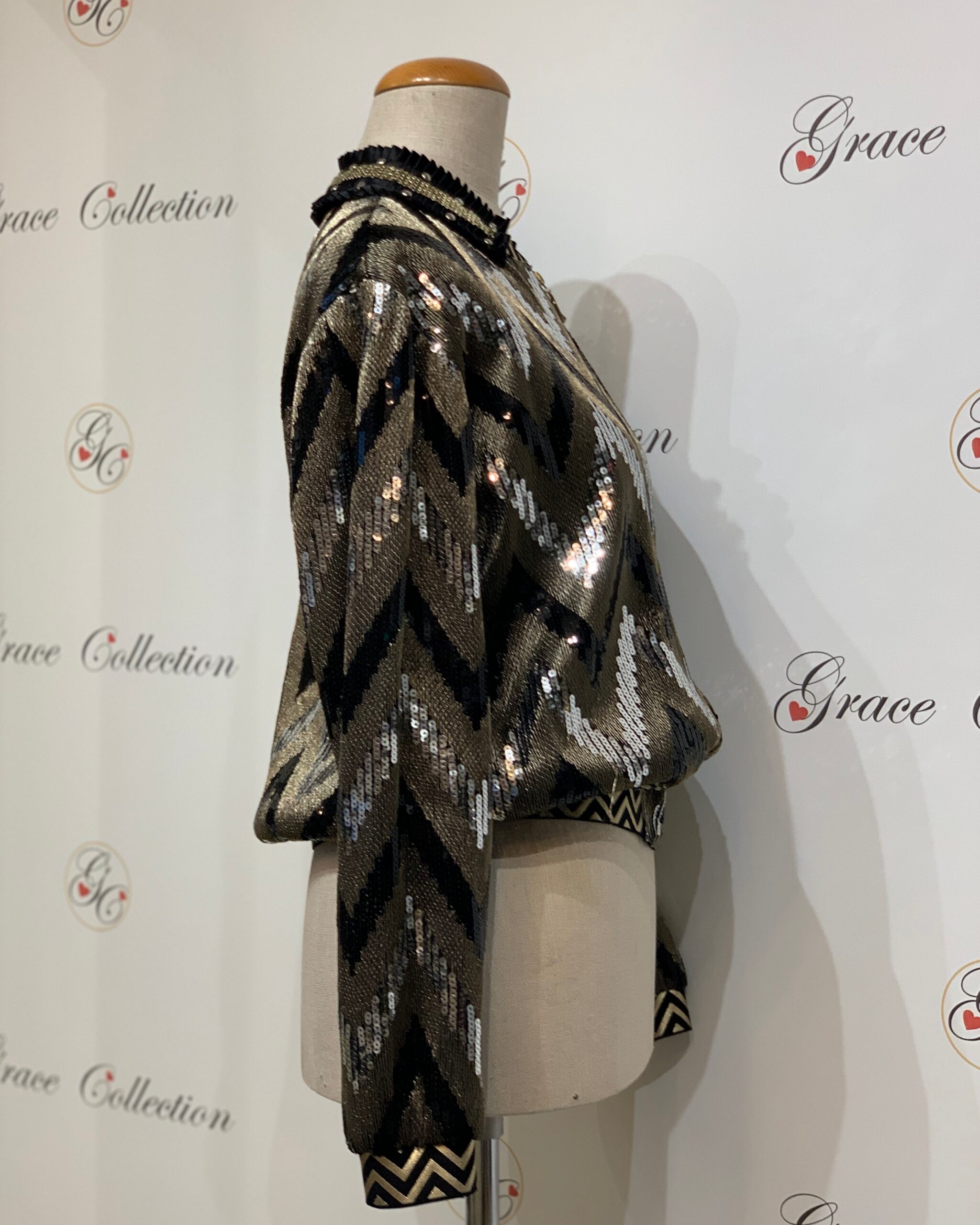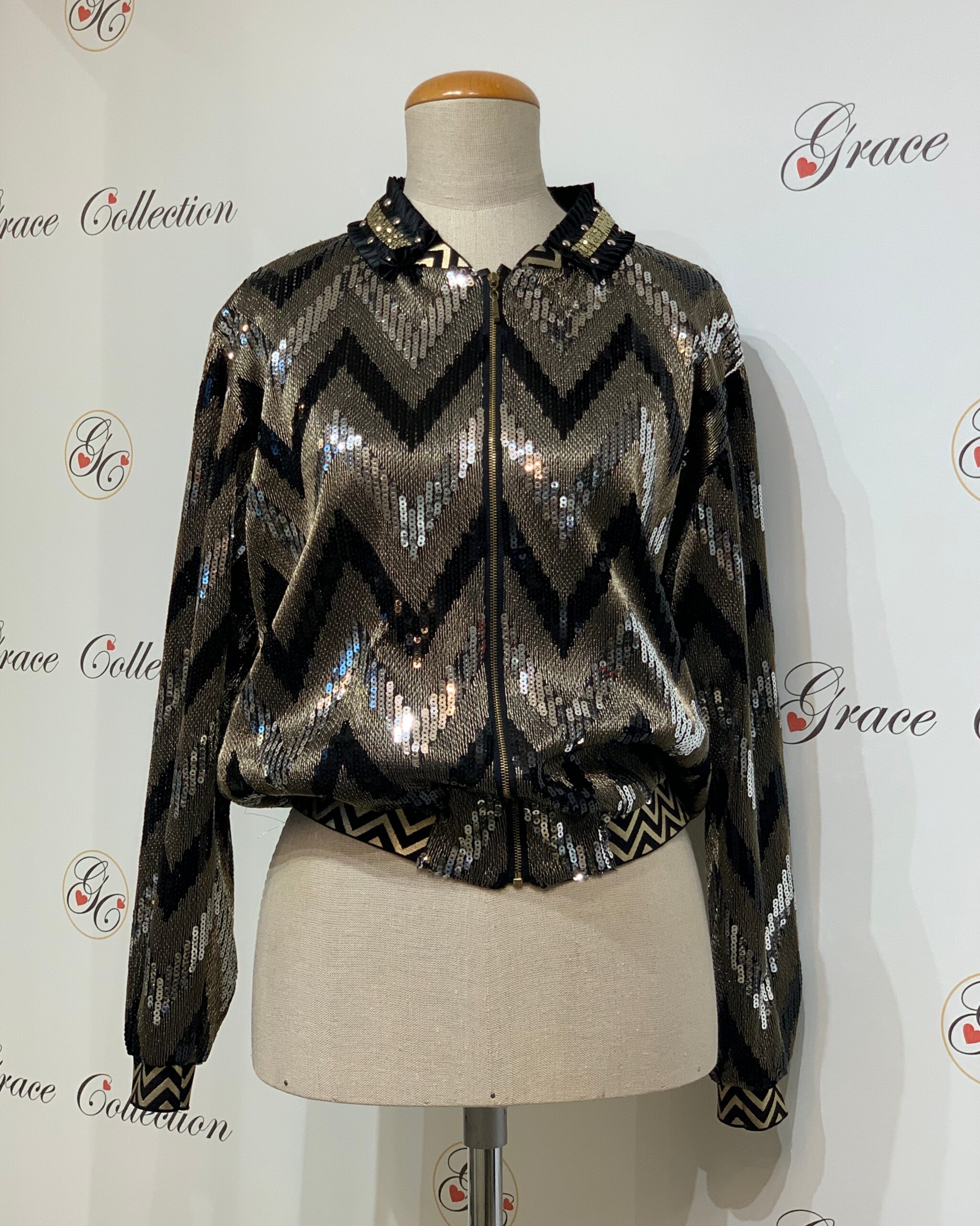 Bomberka cekinowa w kolorach złota i srebra z elastycznymi ściagaczami przy rękawach i talii.
