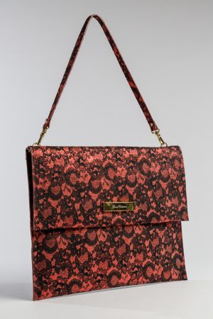 Torebka skórzana kopertowa, z laserowej koronki, ponadczasowo elegancka i klasyczna, podkreślająca wyrafinowany kobiecy styl pasujący do ubrań eleganckich i casualowych. Pasek na ramię średniej długości idealnie trzymający kopertówkę na właściwym miejscu – pod ramieniem.