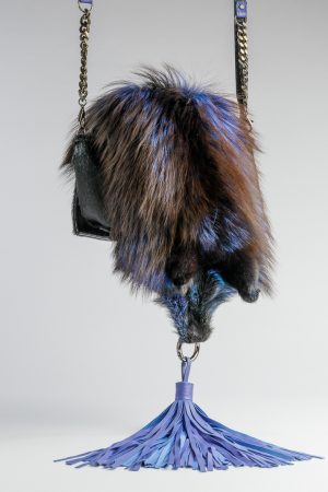 Torebka futerkowa o unikalnym wzorze i kolorze, klapka z futra naturalnego, zakończonego długim skórzanym chwostem, wszystko idealnie dopasowane kolorem do klapki i korpusu. Długi pasek na ramię, wnętrze pojemne, z kieszonką.