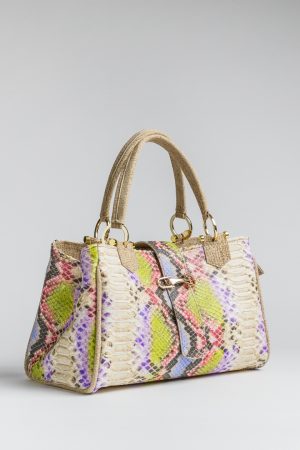 Torebka skórzana o biżuteryjnym wyglądzie i wykonaniu, niezwykle kobieca i intrygująca: choć niewielka, to bardzo pojemna. Wewnątrz przegródka i liczne, pięknie wykończone skórą kieszonki, kolorowa podszewka, długi dodatkowy pasek, unikalne akcesoria i połączenie kolorów skór.