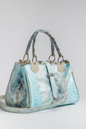 Torebka skórzana o biżuteryjnym wyglądzie i wykonaniu, niezwykle kobieca i intrygująca: choć niewielka, to bardzo pojemna. Wewnątrz przegródka i liczne, pięknie wykończone skórą kieszonki, kolorowa podszewka, długi dodatkowy pasek, unikalne akcesoria i połączenie kolorów skór.