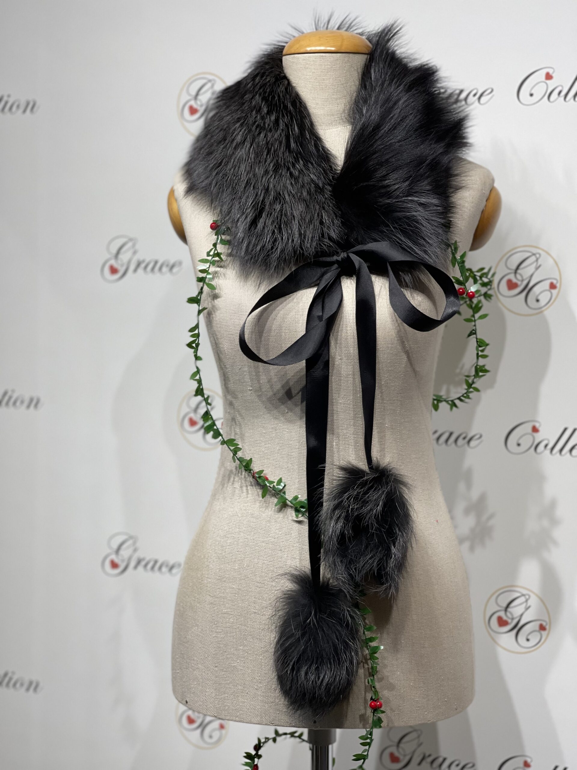 Kołnierz z futra naturalnego, kolor grafitowy ( lis)