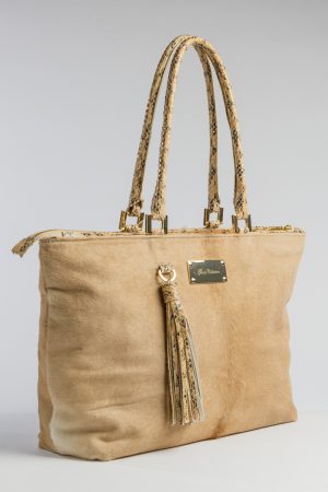 Torebka skórzana typu shopperka, wykonana ze skóry z krótkim włosiem, mieszcząca bez problemu laptop wraz z dokumentami i innymi większymi, niezbędnymi przedmiotami. Góra torby zapinana na zamek błyskawiczny. Prosta i szykowna kobieca elegancja casualowa.